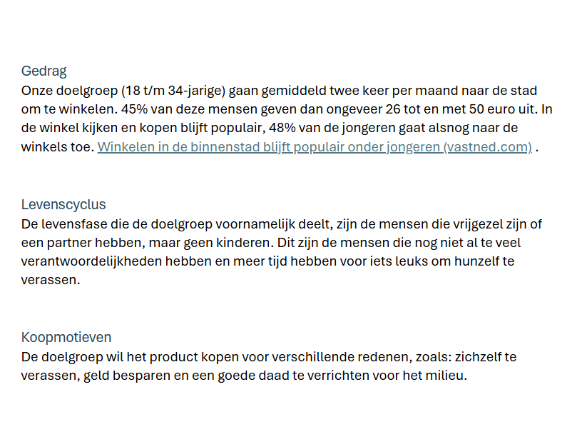Consumentengedrag en -beïnvloeding: Je onderbouwt de inhoud en vormgeving van uitgewerkte marketingmiddelen aan de hand van beïnvloedingsprincipes, theorieën uit de (cognitieve) psychologie en het resultaat van verschillende testen met eindgebruikers.